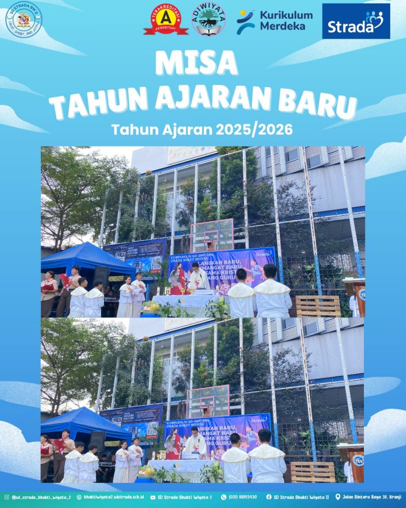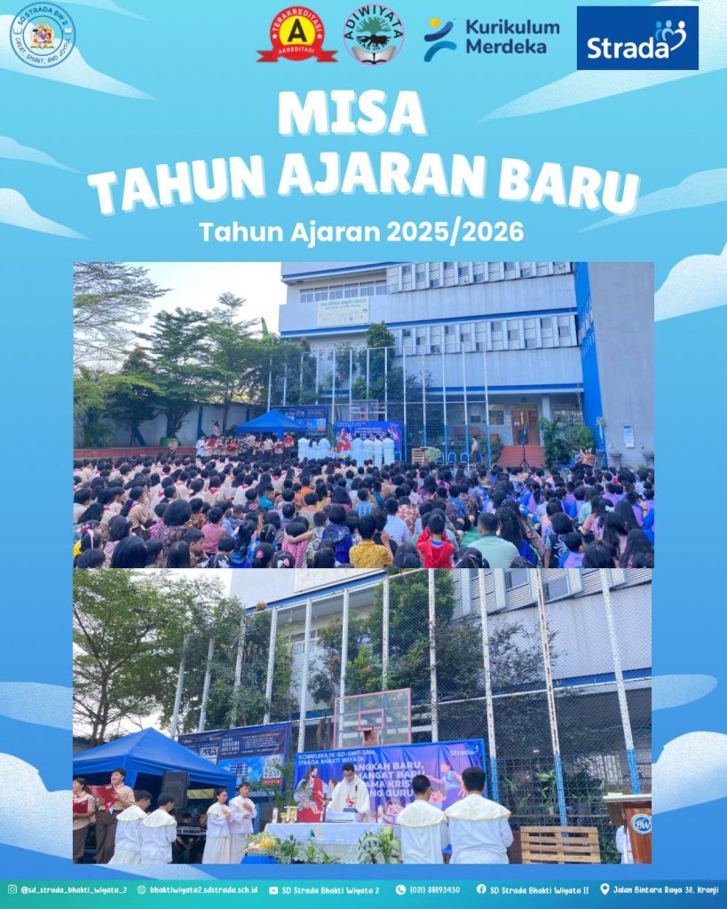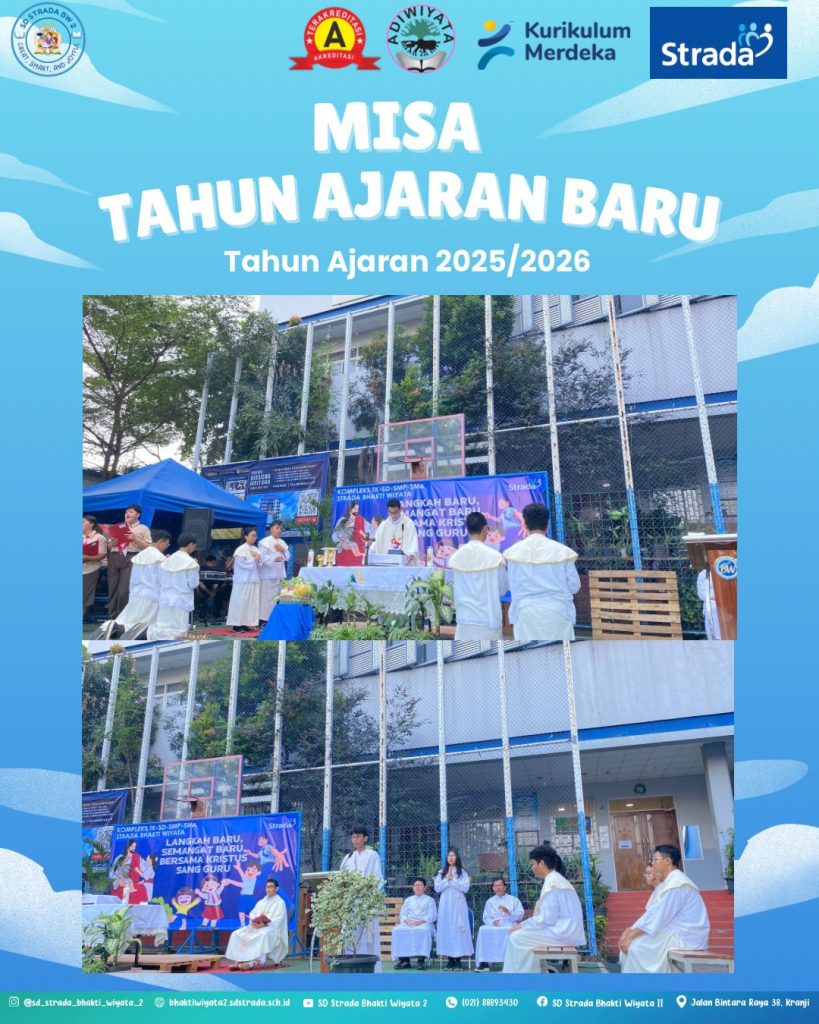 LANGKAH BARU, SEMANGAT BARU, BERSAMA KRISTUS Perayaan Misa Ekaristi awal tahun ajaran 2025/2026 dilaksanakan di Komplek Strada Bhakti Wiyata pada hari Jumat, 1 Agustus 2025 di lapangan SMA Strada Bhakti Wiyata. Pada perayaan Misa Ekaristi kali ini dipimpin oleh Laurensius Bembot, SVD (Romo Flori) dan petugas koor dari SMA Strada Bhakti Wiyata. Perayaan Ekaristi dihadiri oleh seluruh warga komplek Strada Bhakti Wiyata dari TK, SD, SMP dan SMA, siswa-siswi, kepala sekolah, guru dan karyawan. Dalam perayaan Ekaristi, Romo Flori memberikan homili bagaimana mengembangkan talenta Matius 25 ayat 14 sampai 30 mengajarkan kita tentang pentingnya memanfaatkan talenta yang Tuhan berikan kepada kita. Bakat atau kemampuan itu dapat menunjukkan identitas diri seseorang yang khas atau menjadi suatu keistimewaan dalam dirinya. Maka, bakat sebagai bagian dari diri harus dikembangkan supaya berguna bagi diri sendiri dan terutama orang lain. Bila bakat itu hanya untuk diri sendiri, maka dengan sendirinya bakat itu akan mati. Akan tetapi bila dikembangkan sehingga bermanfaat bagi orang lain, itu akan menjadi pujian bagi dirinya sendiri dan kebahagiaan bagi sesama.